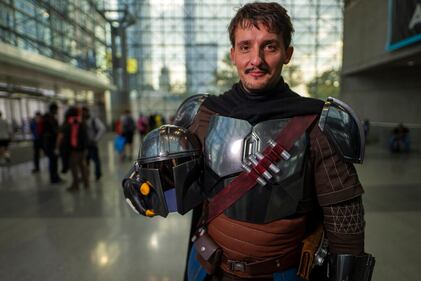 2021 NY Comic Con-Day 2 An attendee dressed as the Mandalorian poses during New York Comic Con at the Jacob K. Javits Convention Center on Friday, Oct. 8, 2021, in New York. (Photo by Charles Sykes/Invision/AP) (Charles Sykes/Charles Sykes/Invision/AP)