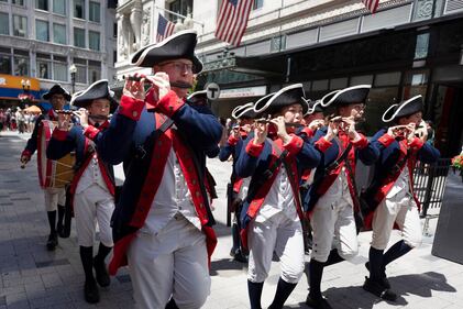 Fourth of July festivities in Boston William Diamond Juniors fife and drum band performs at Downtown Crossing, Saturday, July 2, 2022, in Boston. (AP Photo/Michael Dwyer)) (Michael Dwyer/AP)