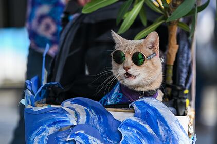 Halloween SUNNYVALE, CALIFORNIA - OCTOBER 27: A cat is seen in a Halloween costume participates the Sunnyvale Pet Parade contest in Sunnyvale, California, United States on October 27, 2024. (Photo by Tayfun Coskun /Anadolu via Getty Images) (Anadolu/Anadolu via Getty Images)