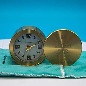 History for sale in NYC auction Tiffany & Co. desk clock with inscription: Hospital for Special Surgery Discovery to Recovery, 2005. In original packaging. (NYC DCAS)