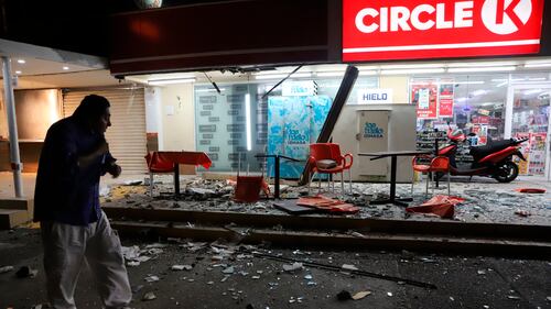 Photos: Magnitude 7 earthquake strikes near Acapulco, Mexico A man walks in from of a convenience store on a street covered with debris after a strong earthquake, in Acapulco, Mexico, Tuesday, Sept. 7, 2021. (AP Photo/ Bernardino Hernandez)
