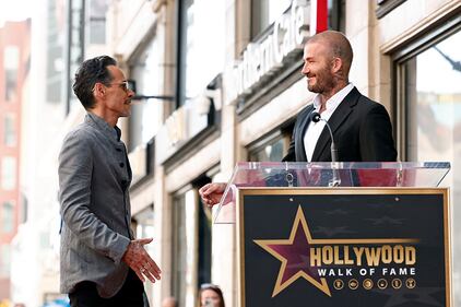 Marc Anthony Honored With Star On Hollywood Walk Of Fame HOLLYWOOD, CALIFORNIA - SEPTEMBER 07: (L-R) Marc Anthony and David Beckham attend the Hollywood Walk of Fame Star Ceremony for Marc Anthony on September 07, 2023 in Hollywood, California. (Photo by Emma McIntyre/Getty Images) (Emma McIntyre/Getty Images)