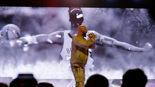 NBA All-Star Game DJ Khaled, Chance the Rapper and Quavo perform during halftime of the NBA All-Star basketball game Sunday, Feb. 16, 2020, in Chicago. (Nam Huh/AP)