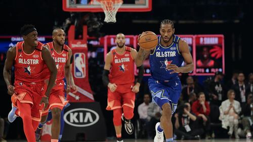NBA All-Star Game Kawhi Leonard of the Los Angeles Clippers drives during the first half of the NBA All-Star basketball game Sunday, Feb. 16, 2020, in Chicago. (Nam Huh/AP)
