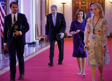 Through the years WASHINGTON, DC - MAY 16: U.S. House Speaker Nancy Pelosi (D-CA) (2nd R) and her husband Paul Pelosi (C) arrive for a reception honoring Greek Prime Minister Kyriakos Mitsotakis and his wife Mareva Mitsotakis in the East Room of the White House on May 16, 2022 in Washington, DC. U.S. President Joe Biden hosted Mitsotakis for bilateral meetings earlier in the day where they talked about allied efforts to "support the people of Ukraine and impose economic costs on Russia for its unprovoked aggression," according to the White House. (Photo by Chip Somodevilla/Getty Images) (Chip Somodevilla/Getty Images)