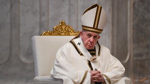Easter Mass Pope Francis attends Easter Sunday Mass, inside an empty St. Peter's Basilica at the Vatican, Sunday, April 12, 2020. (Andreas Solaro/Pool Photo via AP)