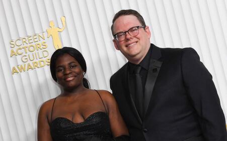 SAG Awards: National Executive Director Duncan Crabtree-Ireland and his daughter arrive for the 29th Screen Actors Guild Awards at the Fairmont Century Plaza. (VALERIE MACON/AFP via Getty Images)