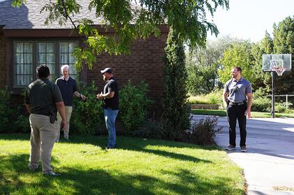 Search for gunman OREM, UTAH - SEPTEMBER 11: Police talk to neighbors at the edge of wooded area next to Utah Valley University where the gun that was used to shoot Charlie Kick might have been found on September 11, 2025 in Orem, Utah. Kirk, founder of Turning Point USA, was speaking at his "American Comeback Tour" on the campus of Utah Valley University when he was shot in the neck and killed on September 10, 2025. (Photo by George Frey/Getty Images) (George Frey/Getty Images)