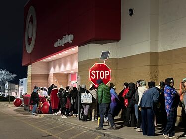 Black Friday JERSEY CITY, NEW JERSEY - NOVEMBER 29: Guests wait in line outside to shop Target Black Friday Deals and Taylor Swift Exclusive Products on November 29, 2024 in Jersey City, New Jersey. (Photo by Dave Kotinsky/Getty Images) (Dave Kotinsky/Getty Images)