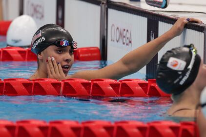 Photos: Swimmer Anastasia Pagonis wins Paralympic gold, breaks world record Anastasia Pagonis (right) of Team United States embrace with Liesette Bruinsma (left) of Team Netherlands after winning the gold and silver respectively in the Women's 400m Freestyle - S11 final on day 2 of the Tokyo 2020 Paralympic Games at the Tokyo Aquatics Centre on August 26, 2021 in Tokyo, Japan. (Adam Pretty/Getty Images)
