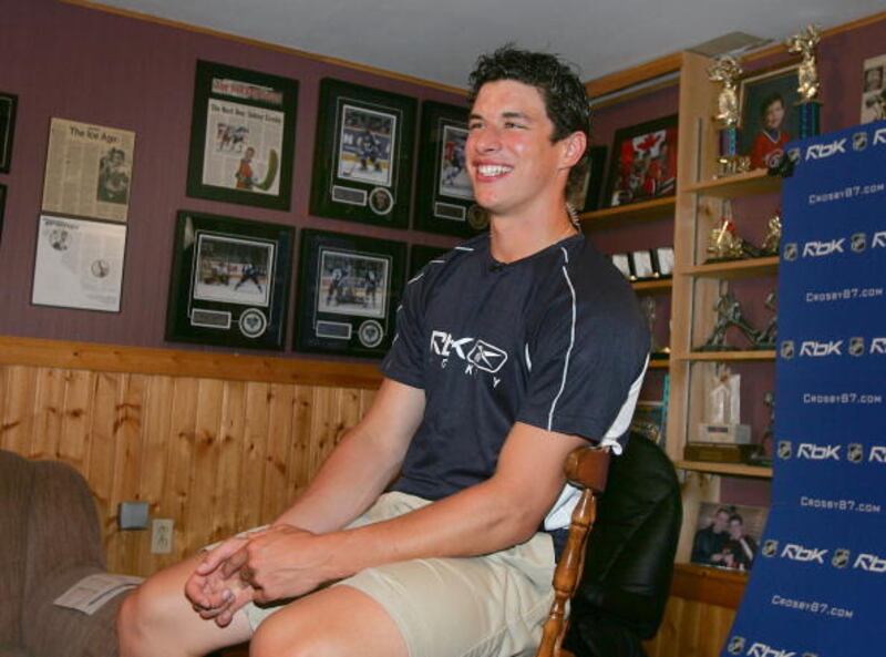 Through the years Top hockey prospect Sidney Crosby prepares for an interview in the basement of his house after hearing the results of the NHL draft lottery on July 22, 2005 in Halifax, Nova Scotia, Canada. The Pittsburgh Penguins won the first overall pick from the lottery, believed to be Crosby in the 2005 NHL draft. (Photo by Mike Dembeck/Getty Images for NHLI) (Mike Dembeck/Getty Images)