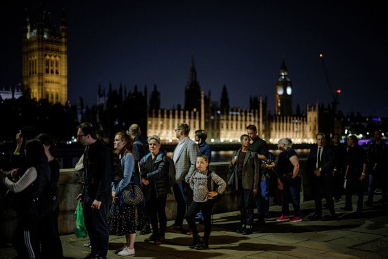 Photos: Queen Elizabeth II lies in state as thousands wait through night to pay respects People stand in line along Southbank as tens of thousands join queues to see Queen Elizabeth II lying in state at Westminster Hall on September 14, 2022, in London. (Rob Pinney/Getty Images)