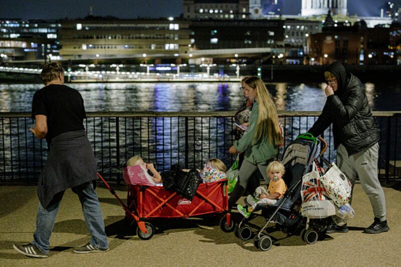 Photos: Queen Elizabeth II lies in state as thousands wait through night to pay respects A family stands in line on the Southbank as tens of thousands join queues to see Queen Elizabeth II lying in state at Westminster Hall on September 14, 2022, in London. (Rob Pinney/Getty Images)
