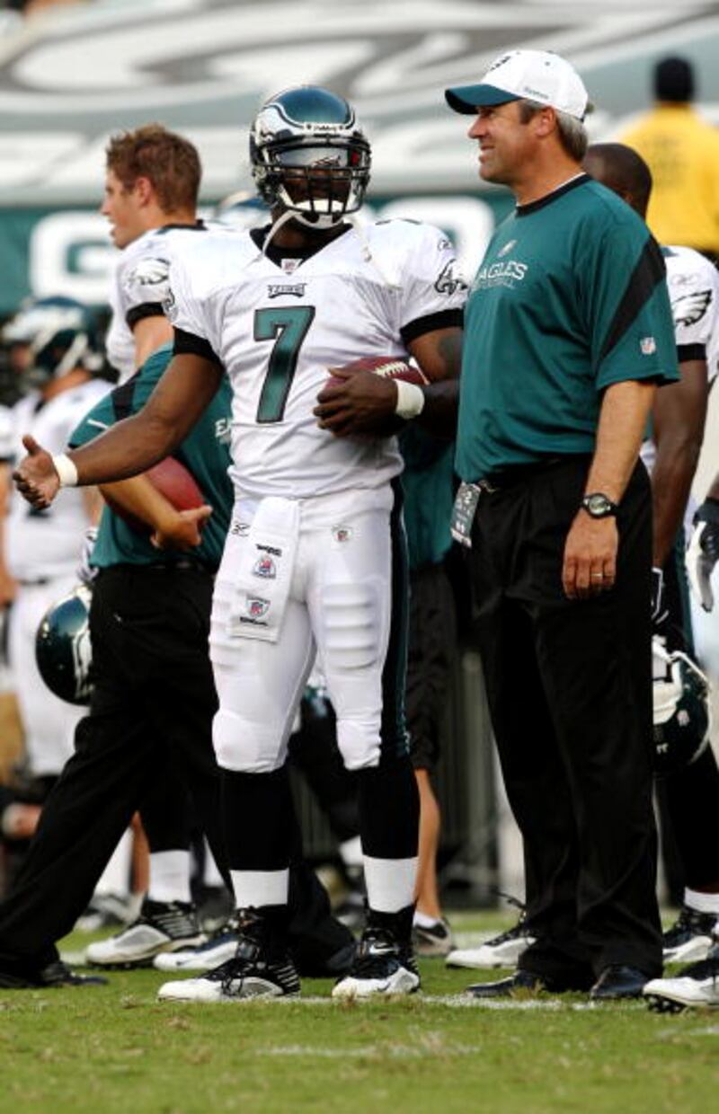 Photos: NFL coach Doug Pederson through the years 2011: Michael Vick and quarterbacks coach Doug Pederson of the Philadelphia Eagles against the Atlanta Falcons at Georgia Dome on September 18, 2011, in Atlanta. (Kevin C. Cox/Getty Images)
