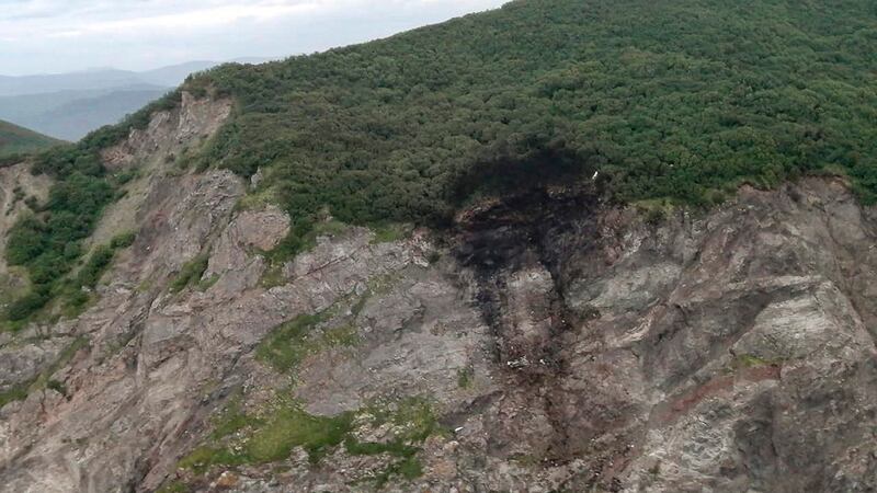 Photos: Plane with 28 on board missing in Russian Far East region This photo released by the Russia Emergency Situations Ministry press service on Wednesday, July 7, 2021, shows wreckage of a missing Antonov An-26 missing plane found near its destination airport outside the town of Palana, in Russia's Far East. (Russia Emergency Situations Ministry press service via AP)