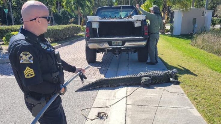 St. Petersburg Police Department on Facebook said officers helped remove an alligator that was 10 feet long and weighed about 400 pounds.
