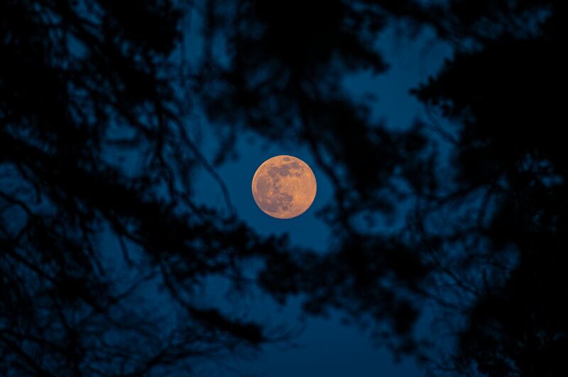 Super pink moon The rising full moon is pictured behind a forest on April 7, 2020, in Hammerstadt, Germany. (Florian Gaertner/Photothek via Getty Images)