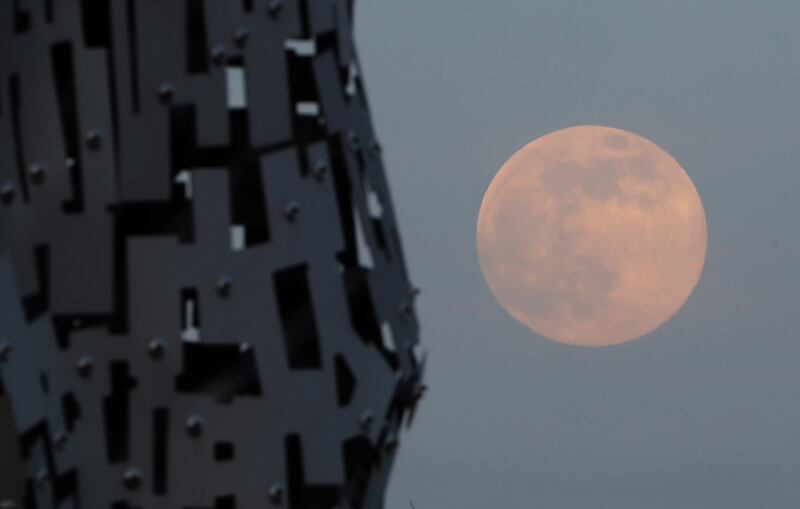 Super pink moon A pink supermoon is seen over the Kelpies sculpture in Falkirk, Scotland. (Andrew Milligan/PA Images via Getty Images)