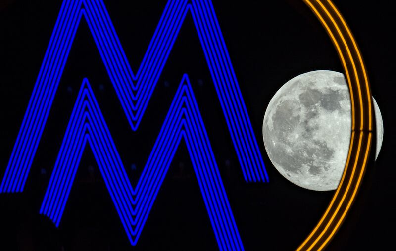 Super pink moon The moon rises as a so-called supermoon next to the typical double-M of the Leipzig Fair next to the conservatory tower in Leipzig, Germany. (Hendrik Schmidt/dpa-picture alliance via Getty Images)