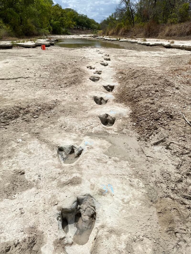 Texas drought reveals dinosaur footprints from 113 million years ago Park officials said the prints were left by Acrocanthosaurus and Sauroposeidon dinosaurs. (Paul Baker/LDL Friends of Dinosaur Valley)