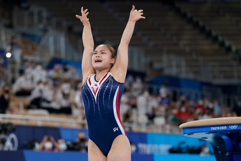 Photos: MyKayla Skinner wins silver after replacing Simone Biles in Olympic vault final Yeo Seo-jeong of South Korea, performs on the vault during the artistic gymnastics women's apparatus final at the 2020 Summer Olympics, Sunday, Aug. 1, 2021, in Tokyo, Japan. (AP Photo/Ashley Landis)