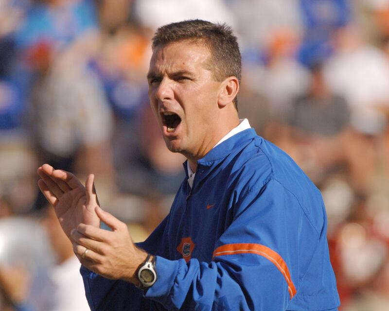 Photos: Urban Meyer through the years 2005: Florida coach Urban Meyer applauds a play against Florida State on November 26, 2005, in Gainesville, Florida. (A. Messerschmidt/Getty Images)