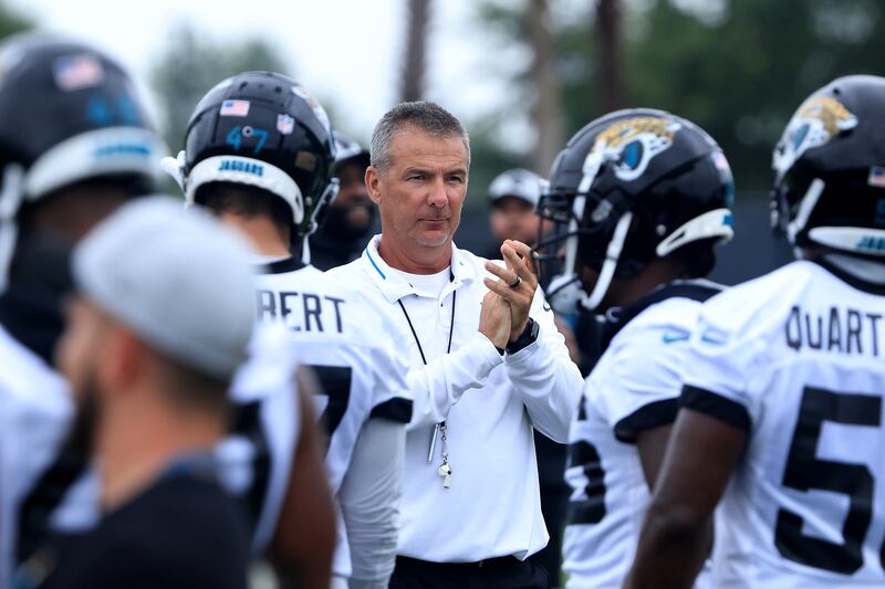 Photos: Urban Meyer through the years 2021: Head coach of the Jacksonville Jaguars Urban Meyer looks on during Jacksonville Jaguars Mandatory Minicamp at TIAA Bank Field on June 14, 2021, in Jacksonville, Florida. (Sam Greenwood/Getty Images)
