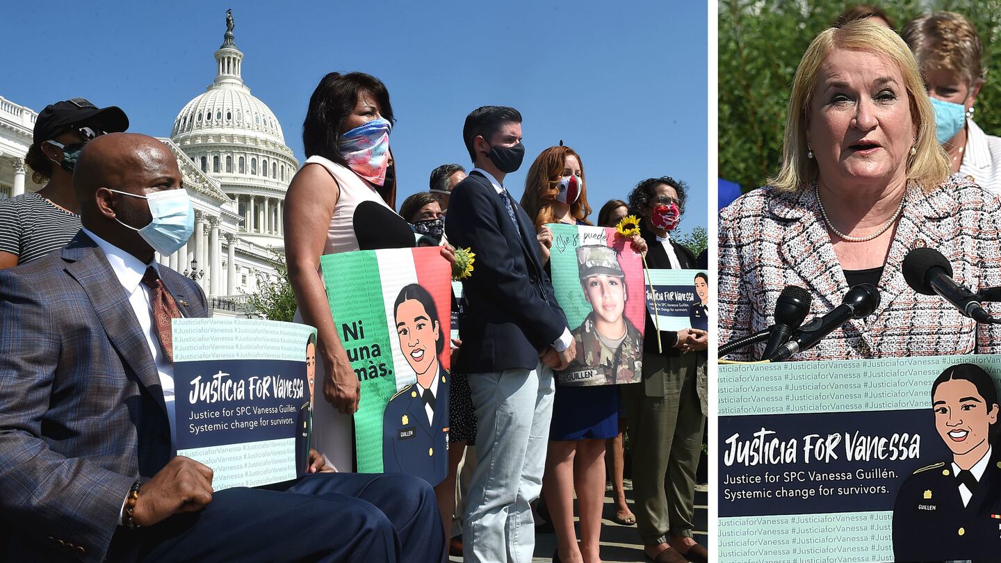 ENDING SEXUAL ASSAULT IN THE MILITARYENDING SEXUAL ASSAULT IN THE MILITARY: Women veteran advocates join Reps. Julia Brownley, Jackie Speier, Sylvia Garcia, and others for a press conference on their efforts to end sexual assault in the military. On Friday, a private military memorial service was held at Fort Hood for Vanessa Guillén, the 20-year old Army private who was found dead two months after she disappeared. Her family says that she had told them she faced sexual harassment on the base, The Guardian reports. In March, Reps. Speier and Brownley introduced legislation to better support survivors of military sexual trauma.