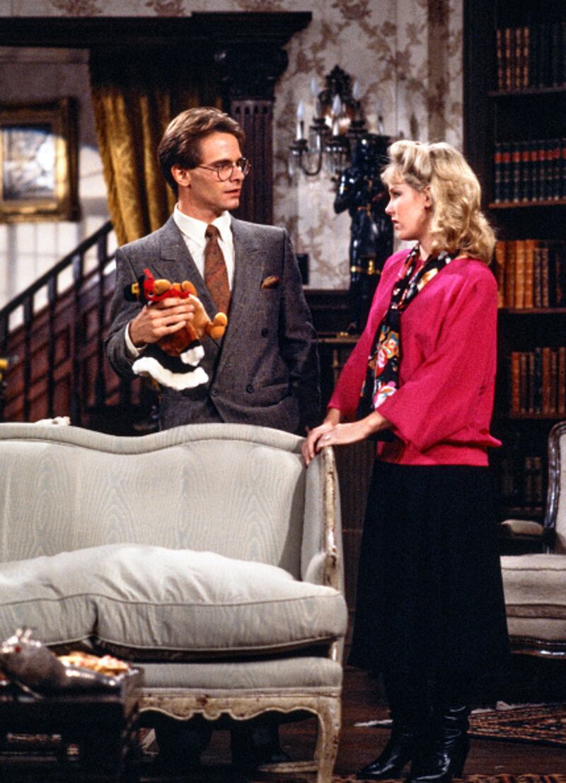 Peter Scolari through the years Pictured from left is Peter Scolari (as Michael Harris) and Julia Duffy (as Stephanie Vanderkellen) in the NEWHART episode, "Thanksgiving for the Memories," November 24, 1986. (Photo by CBS via Getty Images) (CBS Photo Archive/CBS via Getty Images)