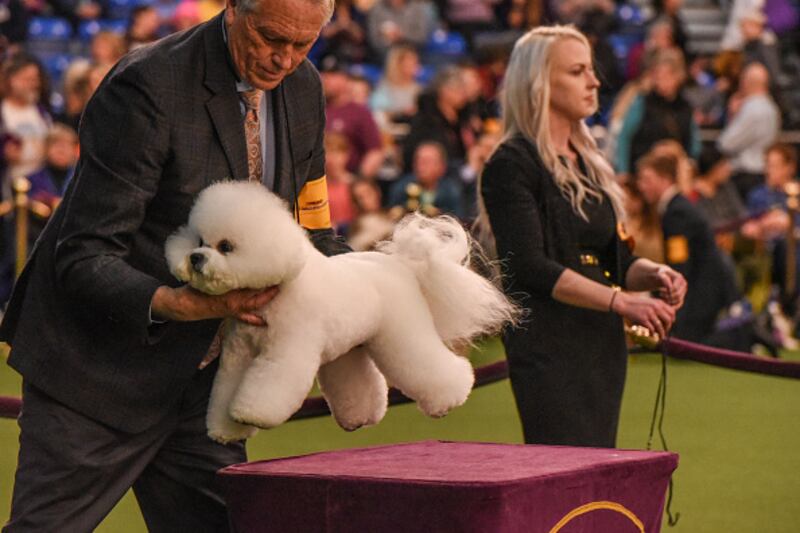 Westminster Kennel Club Hosts Annual Dog Show In New York NEW YORK, NY - FEBRUARY 10: A Bichon Frise competes in the 144th annual Westminster Kennel Club Dog Show on February 10, 2020 in New York City. The show brings more than 200 breeds and varieties of dog into New York City for the the competition which began Saturday and ends Tuesday night in Madison Square Garden with the naming of this year's Best in Show.(Photo by Stephanie Keith/Getty Images) (Stephanie Keith/Getty Images)