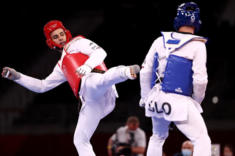 Through the years Pita Taufatofua (L) of Team Tonga competes against Ivan Konrad Trajkovic of Team Slovenia during the Men's +80kg Taekwondo Repechage contest on day four of the Tokyo 2020 Olympic Games at Makuhari Messe Hall on July 27, 2021 in Chiba, Japan. (Photo by Maja Hitij/Getty Images) (MAJA HITIJ/Getty Images)