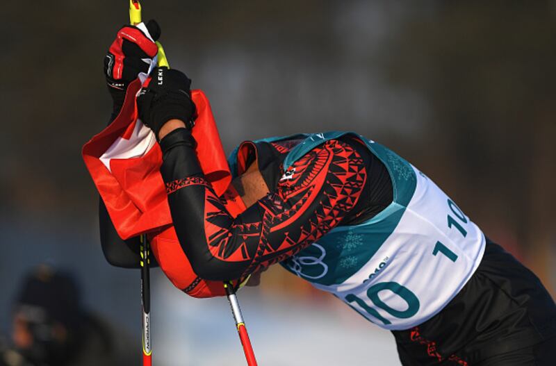 Through the years Pita Taufatofua of Tonga reacts after crossing the finish line during the Cross-Country Skiing Men's 15km Free at Alpensia Cross-Country Centre on February 16, 2018 in Pyeongchang-gun, South Korea. (Photo by Matthias Hangst/Getty Images,) (Matthias Hangst/Getty Images,)