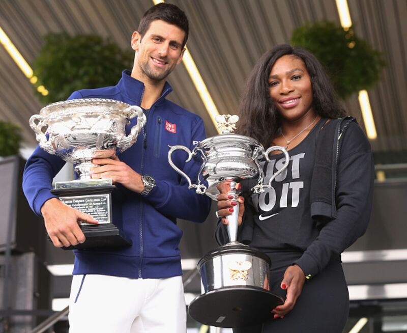 Photos: Novak Djokovic through the years 2016: Serena Williams of the USA and Novak Djokovic of Serbia pose with the trophies during the 2016 Australian Open official draw at Melbourne Park on January 15, 2016, in Melbourne, Australia. (Michael Dodge/Getty Images)