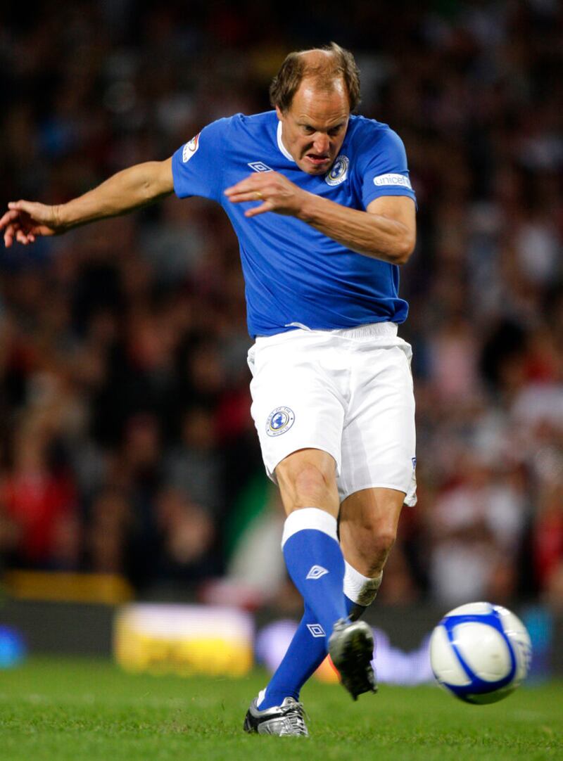 Woody Harrelson U.S. actor Woody Harrelson playing for a Rest of the World team scores the winning penalty against England in a penalty shootout, during the Soccer Aid match at Old Trafford Stadium, Manchester, England, Sunday, June 6, 2010. Soccer Aid is a British charity event in aid of UNICEF UK. The event is a soccer match between two teams comprising celebrities and World Cup legends, one representing England and the other the Rest of the World. (AP Photo/Jon Super) (Jon Super/ASSOCIATED PRESS)