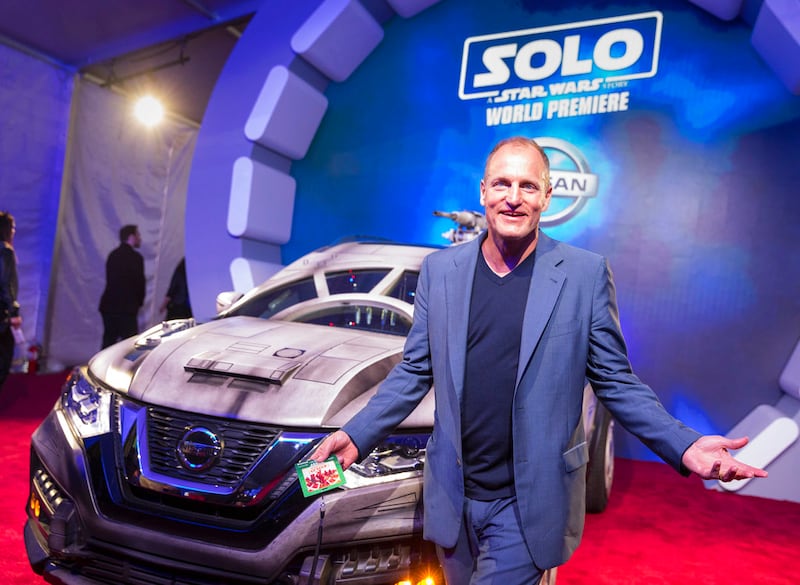 Woody Harrelson IMAGE DISTRIBUTED FOR NISSAN NORTH AMERICA - Woody Harrelson arrives at the Solo: A Star Wars Story film premiere on Thursday, May 10, 2018, in Los Angeles. (Photo by Colin Young-Wolff/Invision for Nissan North America/AP Images) (Colin Young-Wolff/Colin Young-Wolff/Invision/AP)