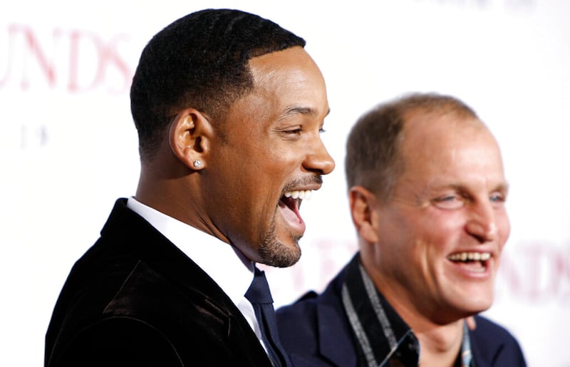 Woody Harrelson Will Smith, right, and Woody Harrelson laugh while talking to each other at the premiere of "Seven Pounds" in Los Angeles on Tuesday, Dec. 16, 2008. (AP Photo/Matt Sayles) (Matt Sayles/AP)