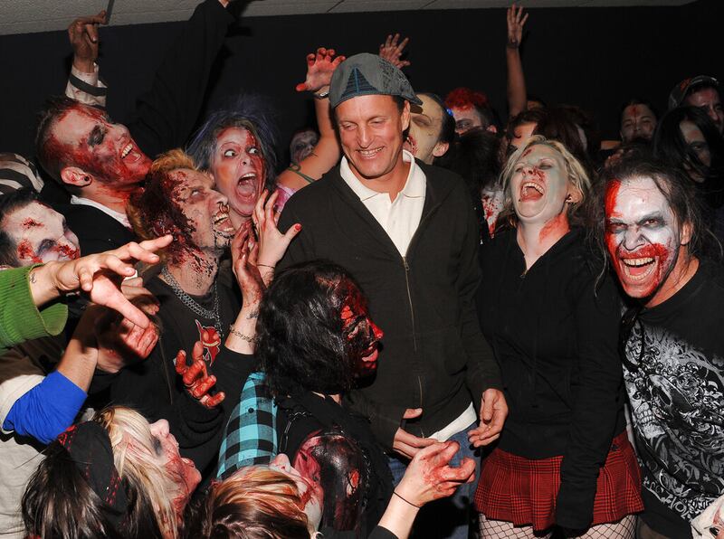 Woody Harrelson Actor Woody Harrelson poses with zombies at a special screening of the film 'Zombieland' at the AMC Empire Theater on Wednesday, Sept. 30, 2009 in New York. (AP Photo/Evan Agostini) (Evan Agostini/ASSOCIATED PRESS)