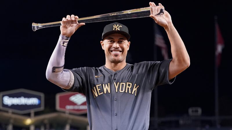 Photos: American League wins 9th straight MLB All-Star Game American League's Giancarlo Stanton, of the New York Yankees, poses with the Ted Williams Most Valuable Player trophy following the MLB All-Star baseball game against the National League, Tuesday, July 19, 2022, in Los Angeles. The American League won 3-2. (AP Photo/Mark J. Terrill)