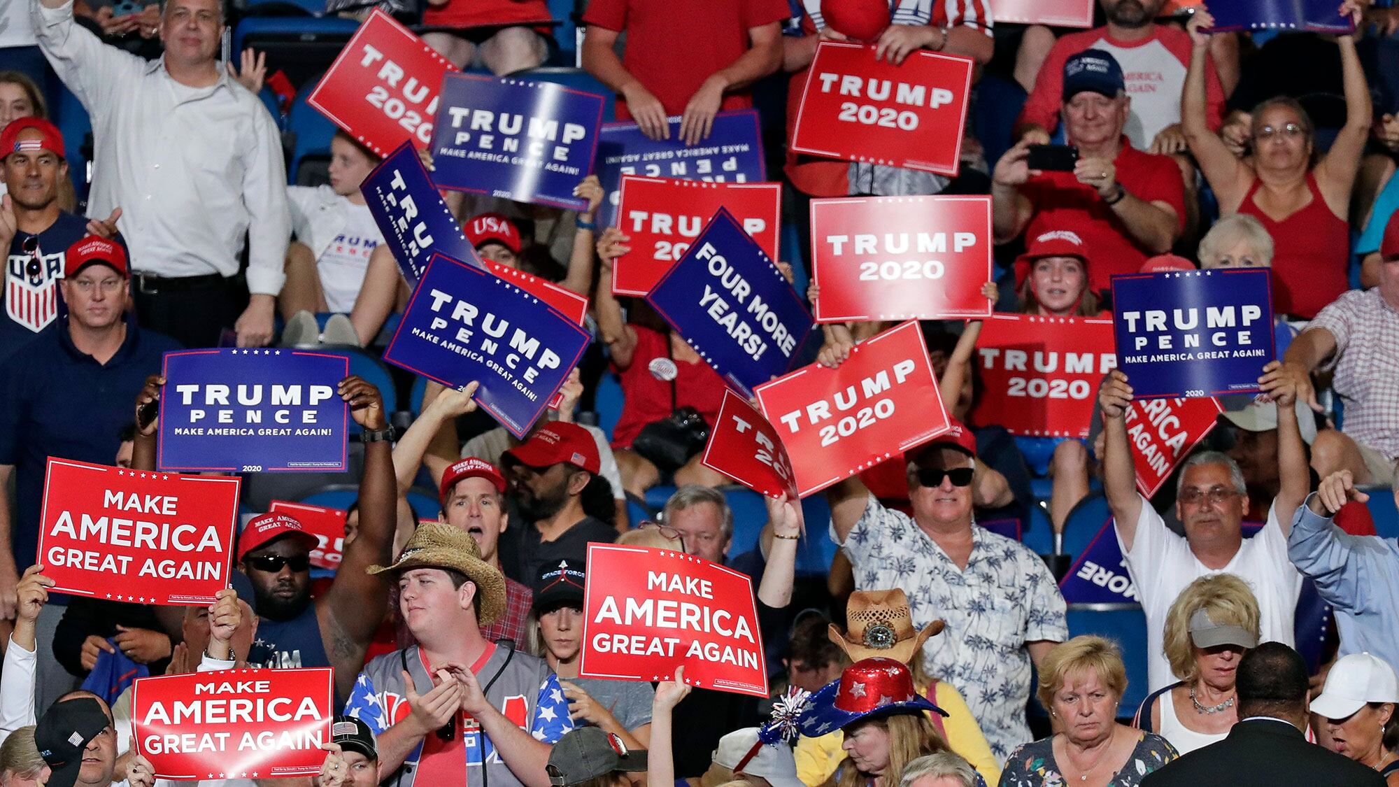 He underscored that on the eve of the rally in the must-win swing state of Florida, returning to the hard-line immigration themes of his first campaign by tweeting that, next week, Immigration and Customs Enforcement "will begin the process of removing the millions of illegal aliens who have illicitly found their way into the United States." That promise, which came with no details and sparked Democratic condemnation, seemed to offer a peek into a campaign that will largely be fought along the same lines as his first bid, with very few new policy proposals for a second term.