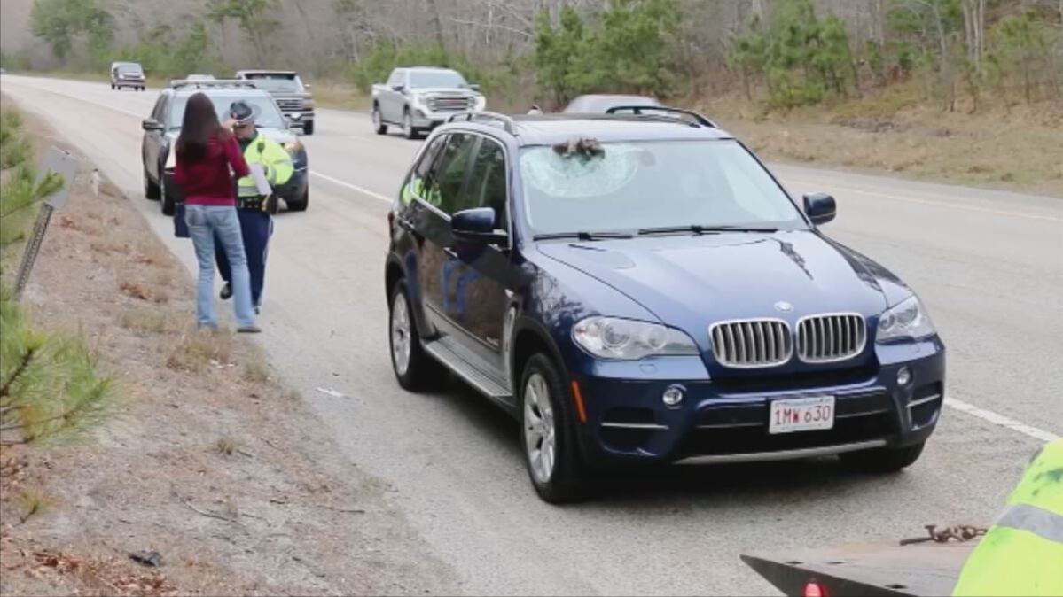BOURNE, Mass. — A turkey smashed into an SUV heading south on Route 3 on the south shore Friday afternoon. The incident happened just before 4 p.m. Near Exit 2 in Bourne.