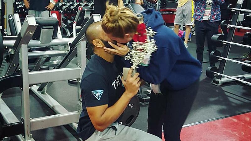 The couple are both personal trainers at the gym, where they met. Hannah says she was “completely floored” by the surprise.