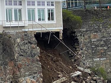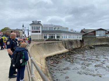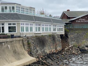 Waterfront Swampscott restaurant hangs over Nahant Bay after seawall collapse