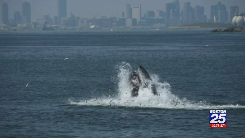 BOSTON, Mass. — A humpback whale was spotted eating fish in Boston Harbor on Tuesday.
