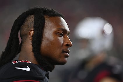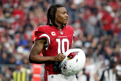 New England Patriots v Arizona Cardinals GLENDALE, AZ - DECEMBER 12: DeAndre Hopkins #10 of the Arizona Cardinals looks towards the sideline against the New England Patriots during the second half at State Farm Stadium on December 12, 2022 in Glendale, Arizona. (Photo by Cooper Neill/Getty Images)