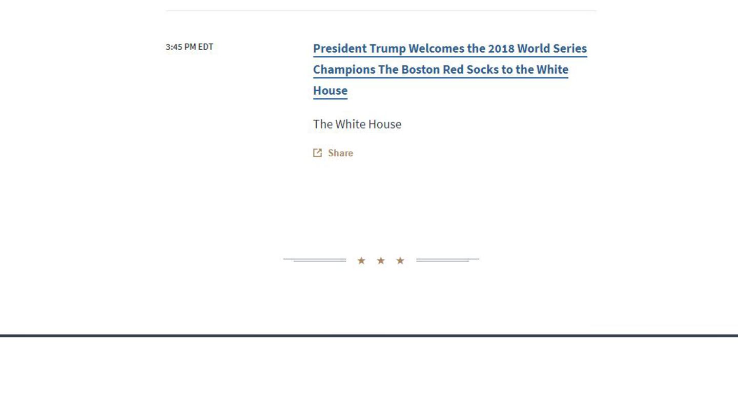 And while the White House incorrectly labeled the team as the "Red Socks" on its website earlier in the day, Trump himself stuck to the correct script, honoring the team's dominant run to the title.
